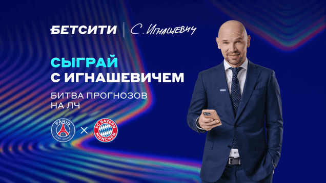 Букмекерская контора «Бетсити» проводит акцию, приуроченную к матчу Лиги чемпионов ПСЖ – «Бавария» (начало – 28 апреля, 22:00 мск). В рамках этой акции подписчики Telegram-канала БК смогут сразиться в прогнозах с известным российским футболистом и тренером Сергеем Игнашевичем. Один счастливчик получит шанс обыграть его и выиграть 5000 рублей в виде фрибета. Даже если удача не будет на вашей стороне, участник всё равно получат 1000 рублей фрибетом.