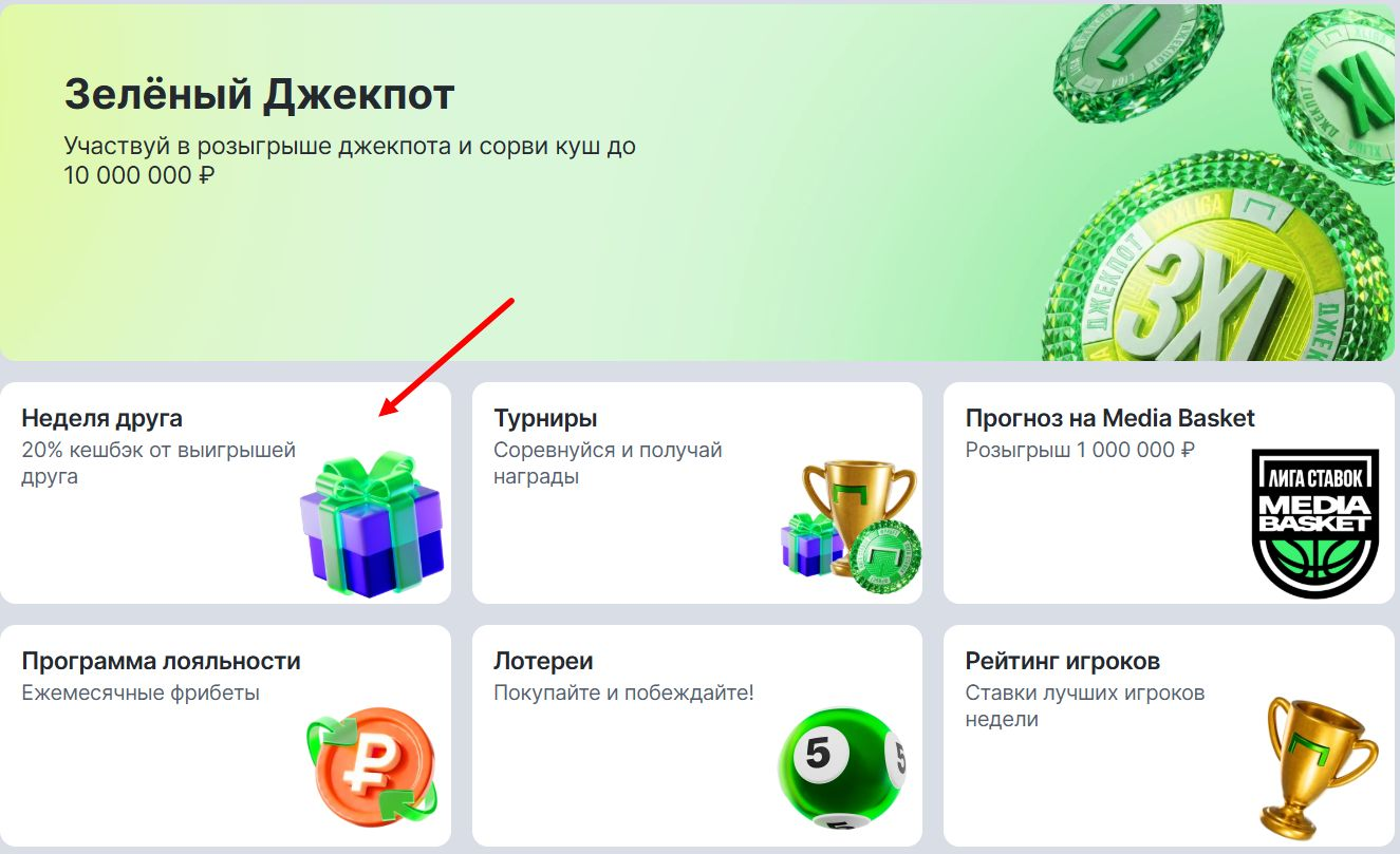 - Перейти на страницу «Бонусы и акции» и выбрать раздел «Неделя друга».