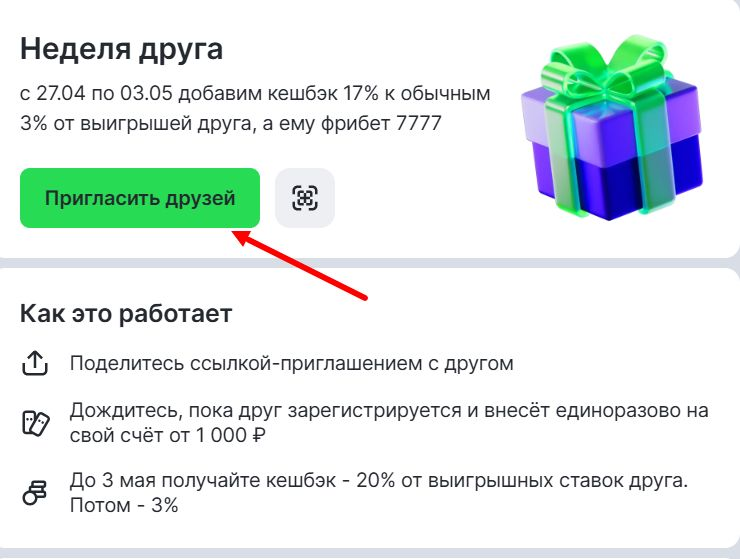- Получать кешбэк с выигрышных ставок приглашенного игрока.