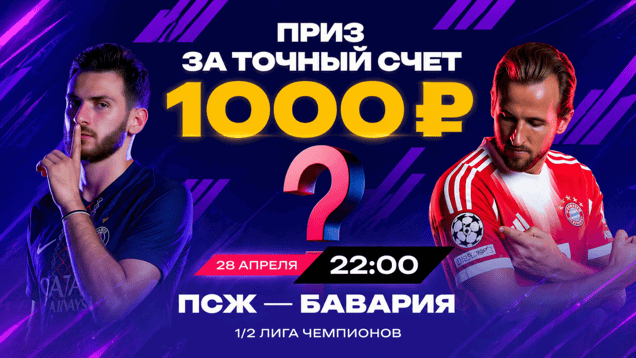 В преддверии матча Лиги чемпионов ПСЖ — «Бавария» (начало — 28 апреля, 22:00 мск) букмекерская компания «Марафон» проводит конкурс для подписчиков официального Telegram-канала. Каждый участник может испытать аналитические способности, указав точный счёт матча, и получить фрибет в размере 1000 рублей на игровой счёт. Всё, что нужно — быть внимательным и не упустить момент до стартового свистка.