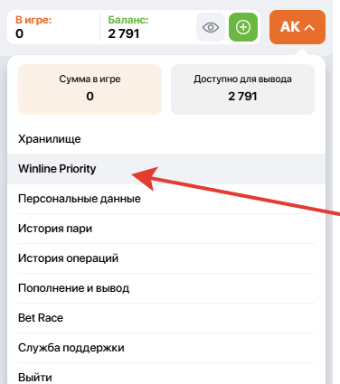 Проверить наличие персональных бонусов можно в разделе «Winline Priority» доступное в меню пользователя.