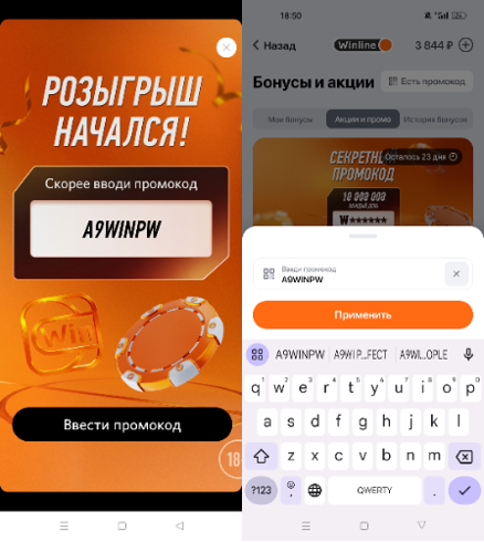 «Винлайн» иногда использует интересный и увлекательный способ раздавать фрибеты своим игрокам. Чтобы узнать секретный промокод, нужно «ловить» его в сторис в мобильном приложении или смотреть промо-ролики, в которых спрятаны его части.