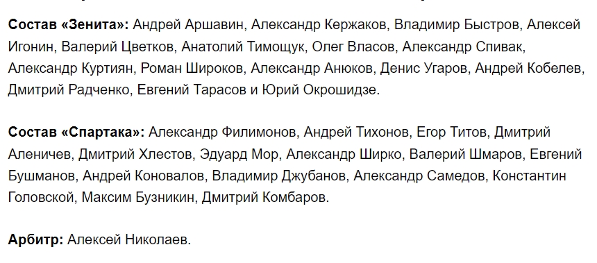 Матч легенд «Зенит» - «Спартак»: озвучены составы команд