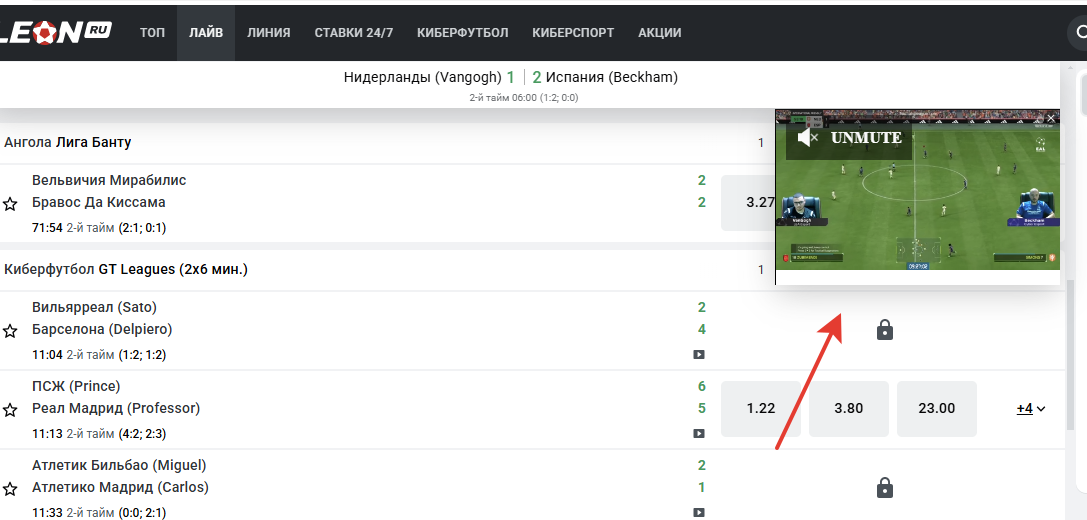 - В БК «Леон» предусмотрен специальный фильтр, показывающий доступные и запланированные на ближайшее время live-события с видео;