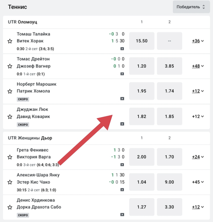 - Теннис – некоторые турниры серии WTA, UTR Pro и немного ITF.