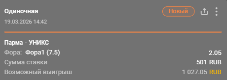 💡 Победа «Пармы» с форой (+7.5) за 2.03