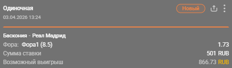 💡 Победа «Басконии» с форой (+8.5) за 1.76