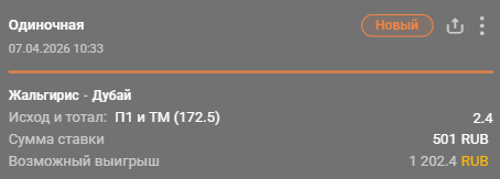 Жальгирис – Дубай: победа Жальгириса + тотал меньше (172.5) / Для конкурса «Ставкомат»