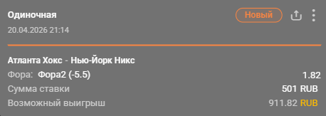 💡 Победа «Нью-Йорка» с форой (-5.5) за 1.96