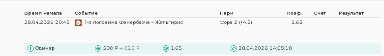 Фора 2 (8.5). 1-я половинаСтавка: 500