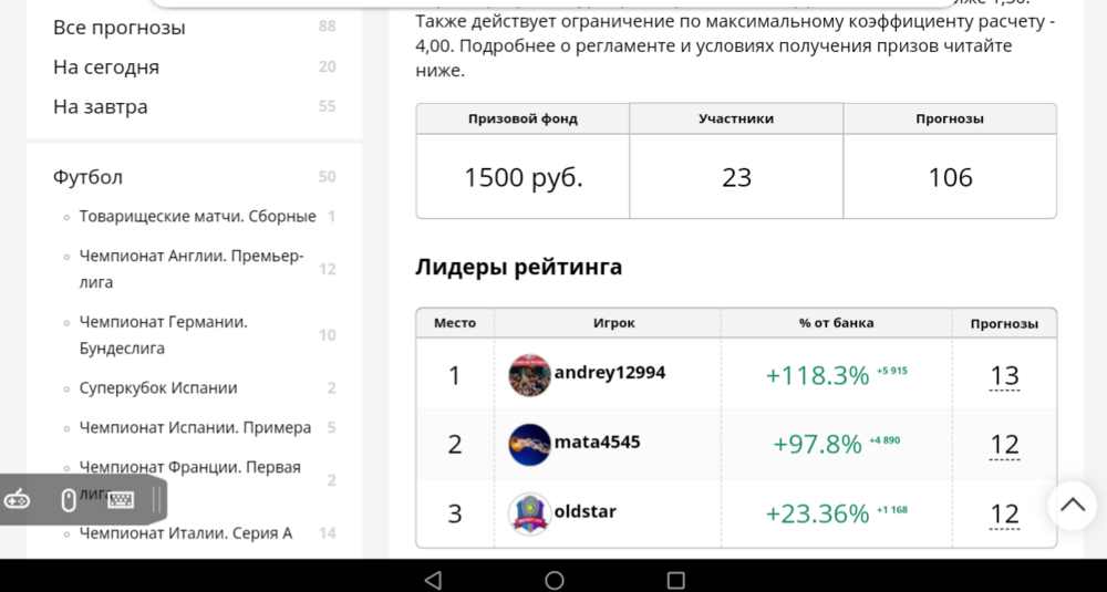 ** — В последний день конкурса для участников из ТОП-3 действует запрет на оформление прогнозов на одни и те же матчи. Если на матч был оформлен прогноз одним из участников ТОП-3, прогнозы от остальных двух участников на тот же матч не будут прикрепляться к конкурсу.