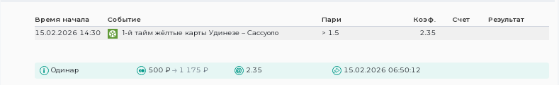 💡 Поэтому я считаю, что и в своей первой игре этого сезона в рамках Серии А она отработает также уверенно и уже до перерыва покажет игрокам Удинезе и Сассуоло 2 и более желтых карточки.