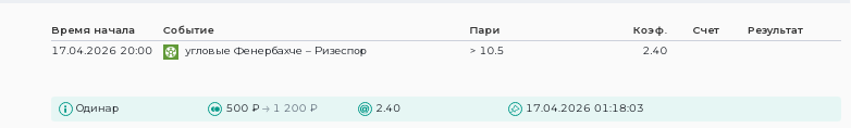 Угловые. Тотал (7.5) БСтавка: 500Выигрыш: +150 Результат: 2:2 (0:0 2:2)