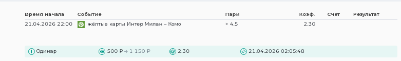 Желтые карточки. Тотал (3) БСтавка: 500 ROI 10 +23.15%