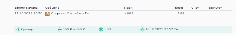 Тотал (66.5) БСтавка: 500Выигрыш: +425 Результат: 45:28 (24:13 21:15)