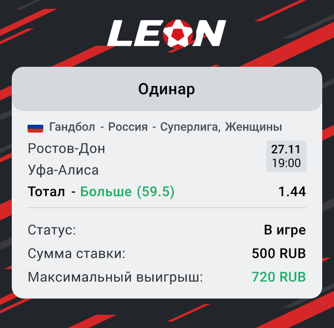 Ростов обладает лучшей атакой чемпионата, забрасывая в среднем около 36-ти мячей за матч. что касается их игры в защите, то здесь средние показатели на уровне 24-х мячей за игру. Уфа-Алиса, в свою очередь имеет худшую защиту в лиге, пропуская фееричные 39 мячей за игру, забрасывая при этом почти 27. Отсюда стоит сказать, что в этом матче нас точно ждет быстрый и атакующий гандбол, где очевидный фаворит вряд ли будет предельно сконцентрирован в своих оборонительных действиях, все-таки очевидно, что за счет атаки они все равно возьмут свое. Поэтому предлагаю рассмотреть верховой тотал в этой игре.