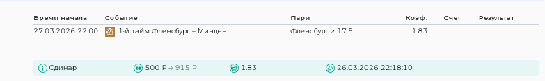 💡 В очной встрече первого круга Фленсбург в гостях забросил 22 мяча до перерыва. Поэтому я считаю, что и на домашнем паркете у них не возникнет абсолютно никаких проблем с достижением планки в 18 заброшенных мячей уже в первой половине.