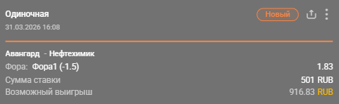 Авангард – Нефтехимик: победа Авангарда с форой (-1.5) / Для конкурса «Ставкомат»