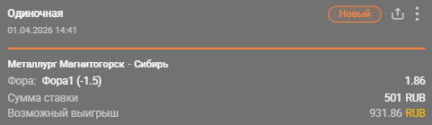 💡 Победа «Металлурга» с форой (-1.5) за 1.93