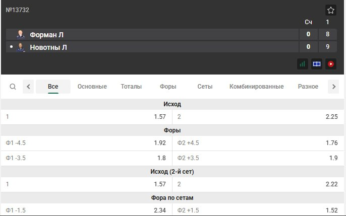 Прогноз на матч Любош Форман (Чех) — Ладислав Новотны (Чех)