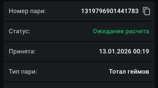 Тотал (19.5) БСтавка: 500Проигрыш: -500 Результат: 0:2 (3:6 3:6)