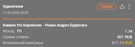 💡 Победа Уго Карабелли за 1.72